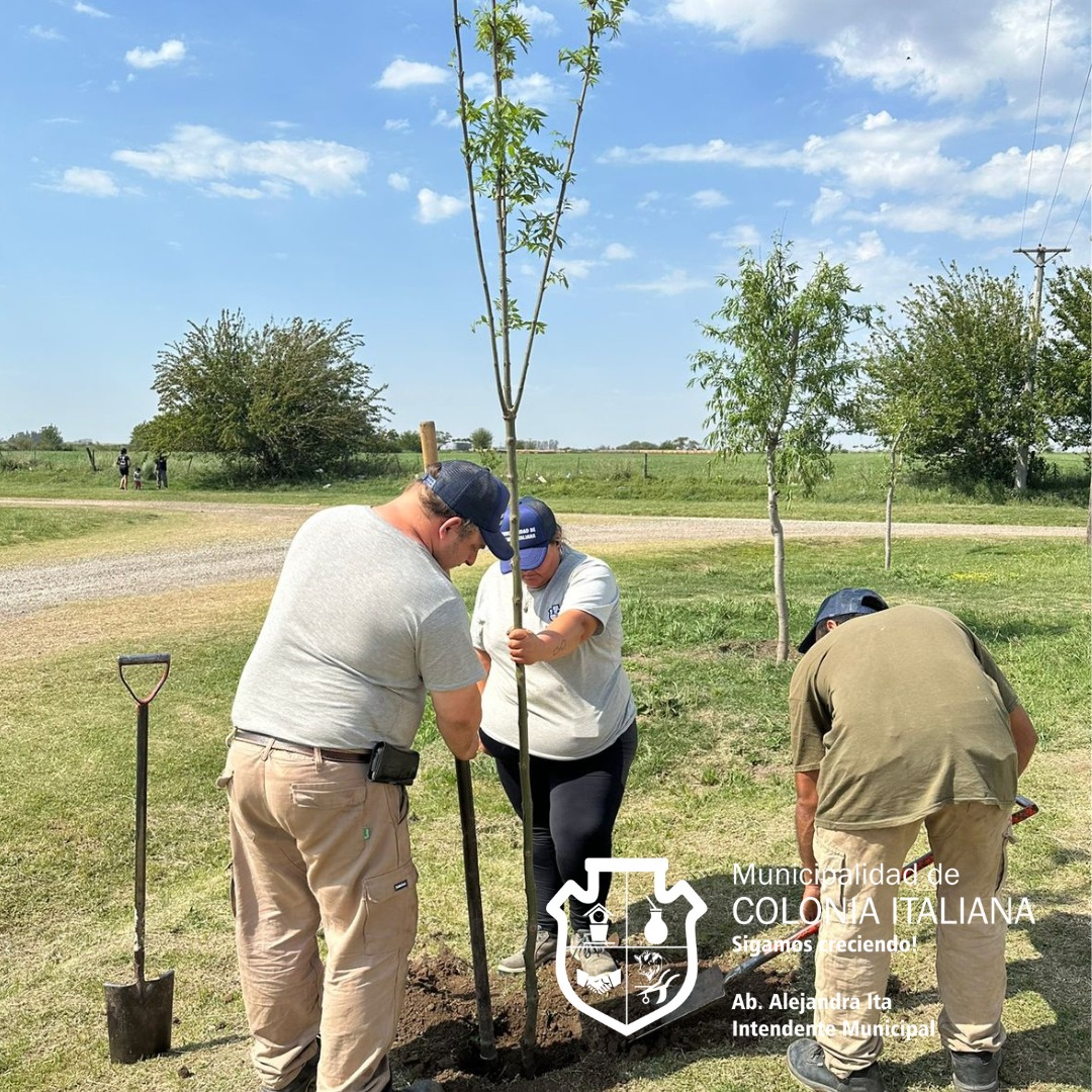 Desde la Muni venimos trabajando para sumar ejemplares de árboles en diferentes lugares de nuestro pueblo.