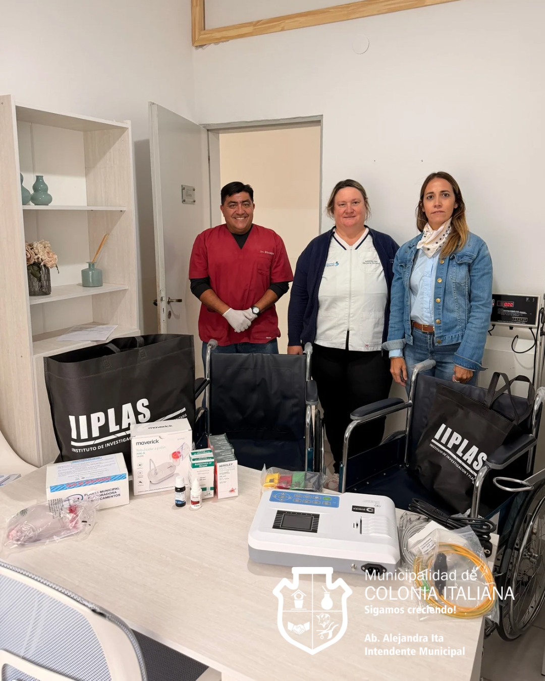 De la mano del Secretario de Salud, Gustavo Klein, el Municipio recibió dos sillas de ruedas para adulto, un kit IRAB, que incluye un nebulizador e insumos, y un electrocardiógrafo.