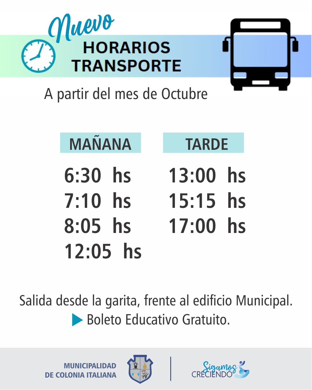 NUEVOS HORARIOS PARA EL TRANSPORTE